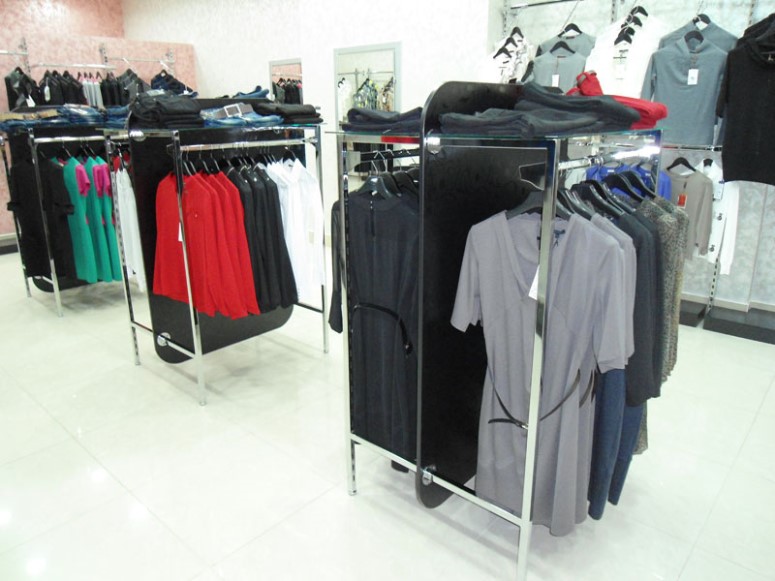 Торговые системы на основе труб могут формировать стеллажи для размещения товаров. Однако они также позволяют создавать вешалки для одежды или других товаров, монтировать примерочные зоны. Такие варианты хорошо подходят для создания витрин, прилавков, подиумов, островных конструкций.